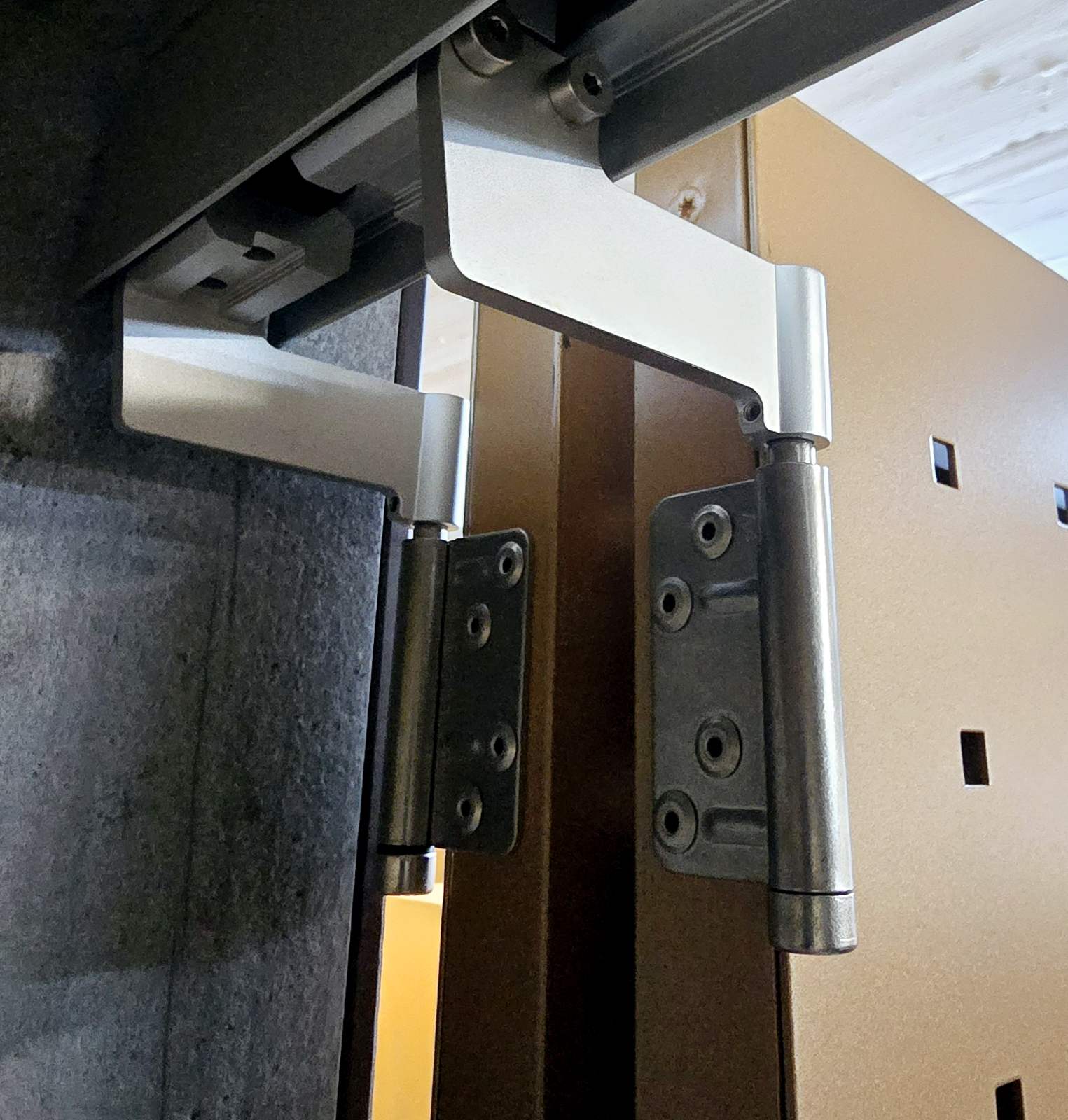 - Kovanie | spojovací materiál: vodiace lišty – profily – konzoly/ hliník natural, hliník anodized (silver) | pánty – spojovací materiál/ nerez natural