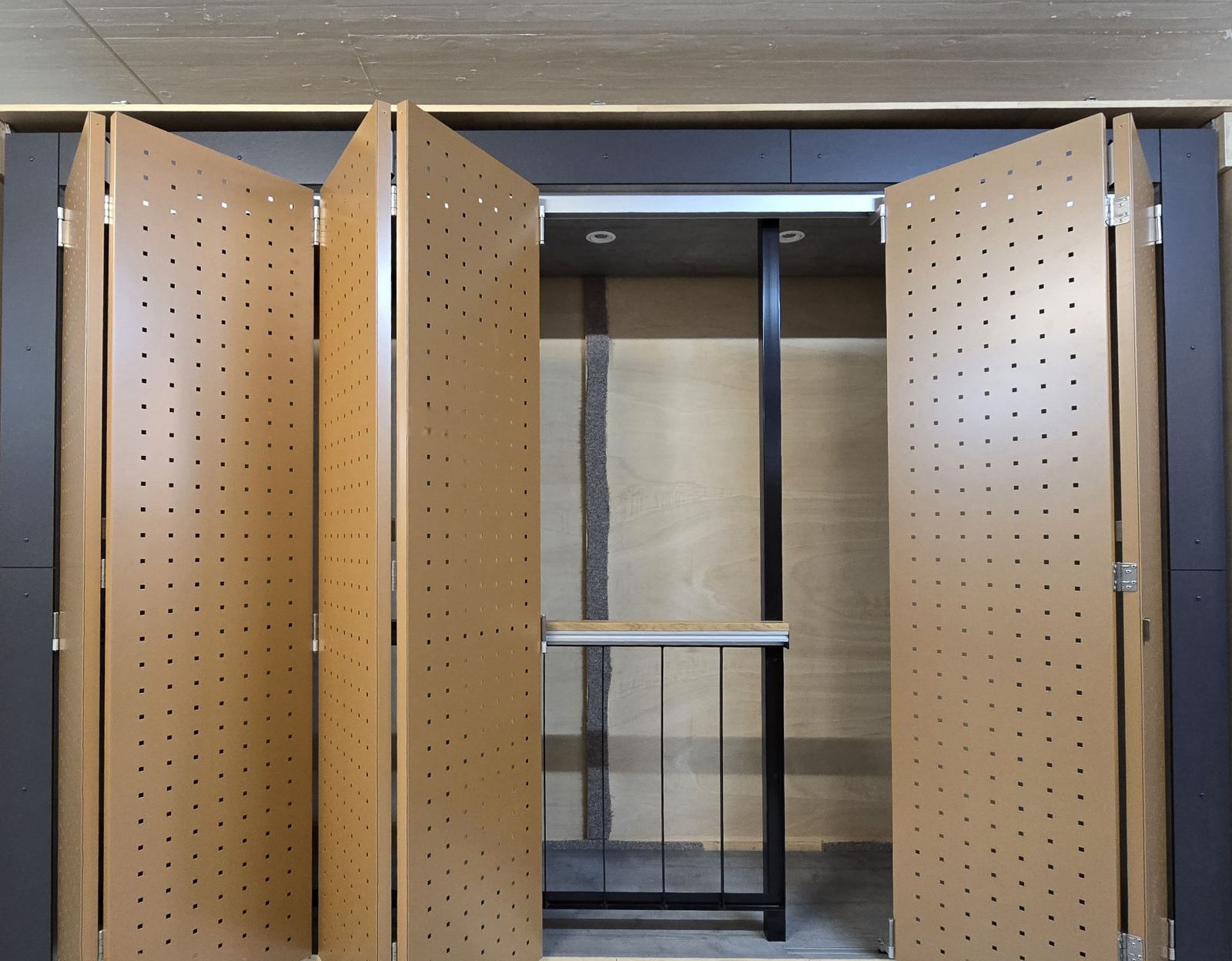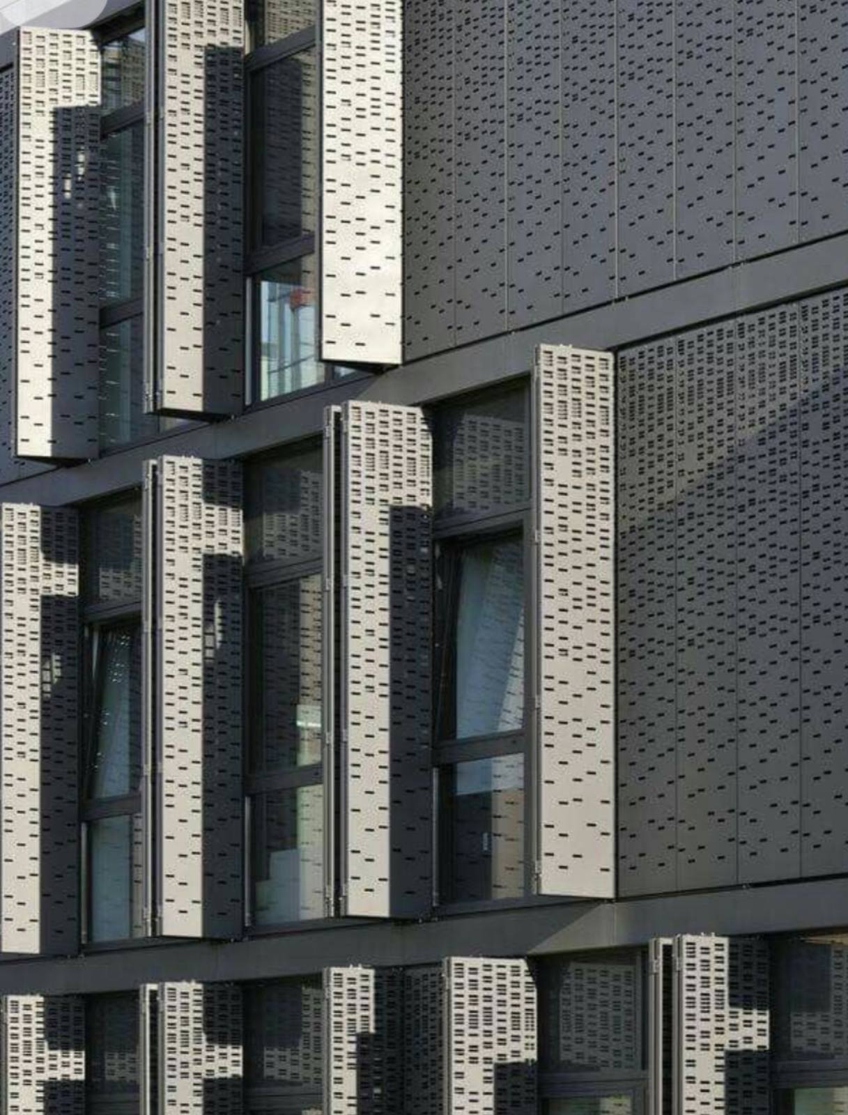 AVGFLEX FOLDING MANUAL skladacie harmonikové fasádne panely a harmonikové okenice z hliníka môžu mať voliteľnú perforáciu (štandardné rastre, gradienty, písmo/logo, piktogramy, obrazové motívy) aj embosované vzory pre plastickú hru svetla a tieňa. Perforácie optimalizujeme na rovnováhu medzi prievzdušnosťou, tienením a tuhosťou panelu/krídla alebo na želanie pripravíme protosériu. Výrobná a dizajnová logika AVGFLEX FOLDING MANUAL môže byť kompatibilná s návrhom kovových fasád alebo perforovaných fasád, kde môžeme zachovať jednotný výraz naprieč obvodovým plášťom budovy.