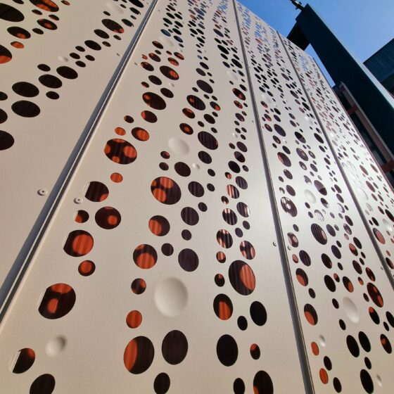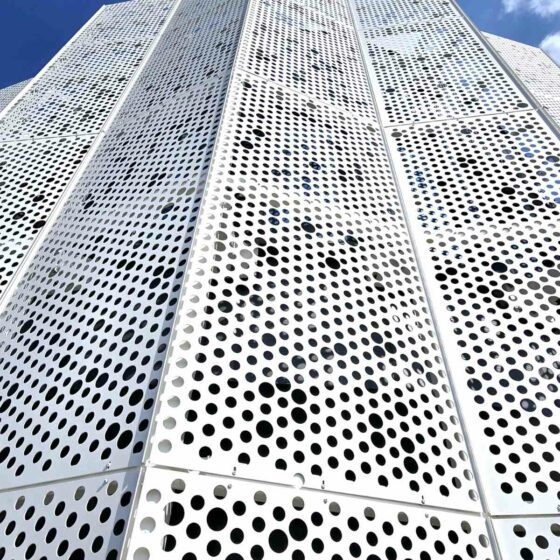 Fasáda z kovu alebo kovový interiérový obklad AVG METAL s dizajnovými individuálnymi perforáciami ponúka našim výrobkom kreatívny dizajn.
